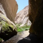 Un pequeño cañón de paredes rojizas y formaciones volcánicas